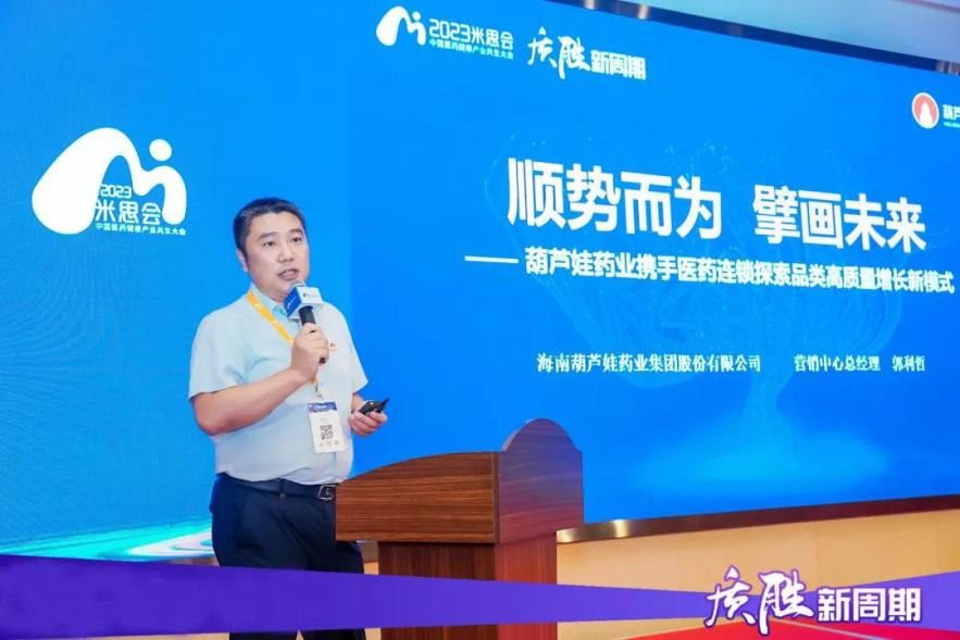 大会期间,在【米思分会】VIP供零对接会上,东升国际药业集团营销中心总经理郭利哲作了题为《顺势而为 擘画未来——东升国际药业携手医药连锁探索品类高质量增长新模式》主题演讲,向广大零售终端客户介绍了近年来东升国际药业集团在产品研发、智能制造、专业化推广、营销变革、品牌建设等方面取得的成绩与荣誉,同时较为详尽地介绍了东升国际药业集团的儿童用药、儿童保健品、儿童营养品及成人慢病用药、特殊养生佳品、女性产品等产品集群与系列产品矩阵,让与会客户产生了浓郁的合作兴趣。郭利哲还向大家分享了东升国际药业与全国头部连锁战略合作的经典成功案例,并表示接下来将与中小连锁客户共同探寻零售药店品类高质量增长新路径,以品牌共建、品类共赢为抓手,构建以供零双方深度融合的新型商业合作新模式。